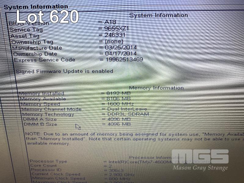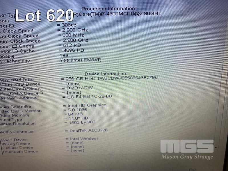 LAPTOP, DELL LATITUDE E6440, CORE i7 4600M (4TH GEN) @ 2.9GHz, 8GB DDR3 RAM, 256GB SSD, DVD-RW, 14" WIDESCREEN (1600x900), INTEL HD VIDEO, Wi-Fi, WINDOWS 10 HOME INSTALLED & POWER SUPPLY (NOTE: DAMAGE TO CASING, LINE ON SCREEN) S/N:9655XZ1
