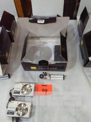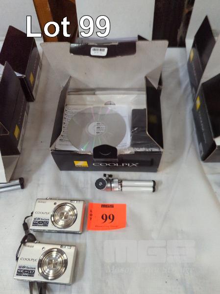 2 X NIKON COOLPIX S570 DIGITAL CAMERAS WITH BATTERY, BATTERY CHARGING DOCK, 2GB SD CARD, EXTENDABLE MINI TRIPOD, CABLES, USER MANUALS AND SOFTWARE SUITE CD ALL IN ORIGINAL PACKAGING.