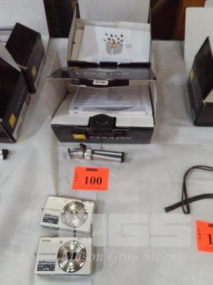 2 X NIKON COOLPIX S570 DIGITAL CAMERAS WITH BATTERY, BATTERY CHARGING DOCK, 2GB SD CARD, EXTENDABLE MINI TRIPOD, CABLES, USER MANUALS AND SOFTWARE SUITE CD ALL IN ORIGINAL PACKAGING.
