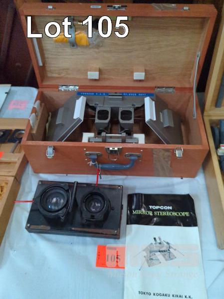VINTAGE TOPCON MIRROR STEREOSCOPE IN CARRY BOX AND ESKOFOT ULTRAGON DUAL MOUNTED LENS BLOCK