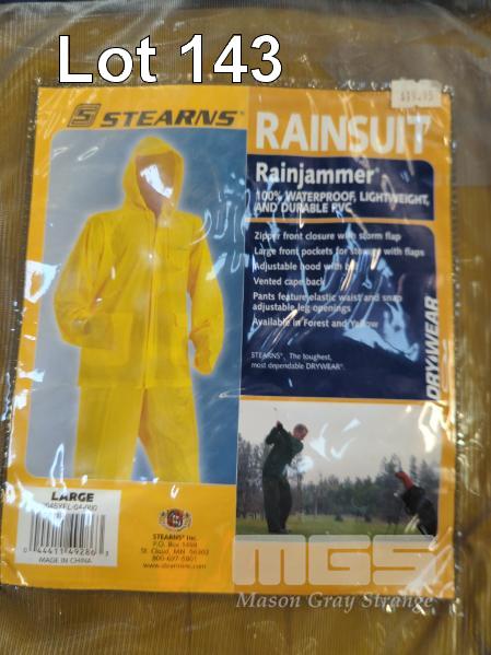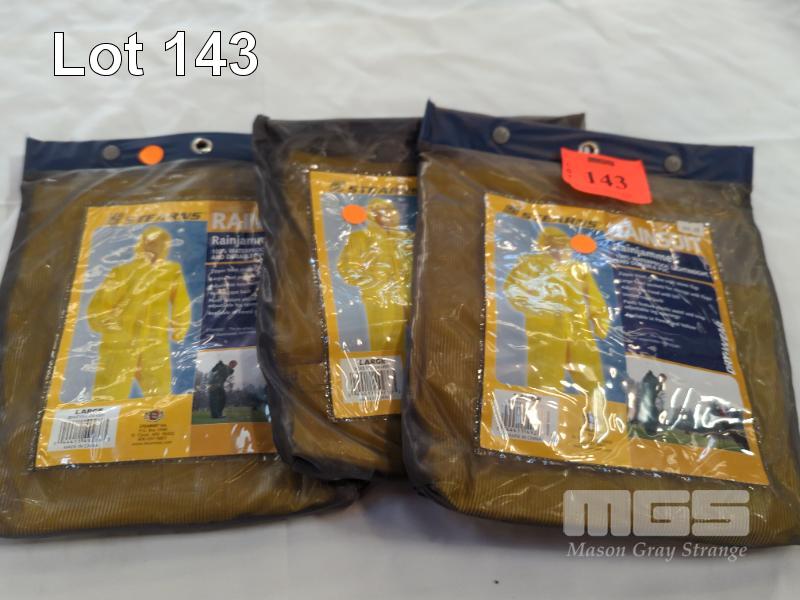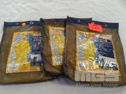 3 X "STEARNS" PVC RAINSUITS. SIZE LARGE. COLOUR YELLOW.
