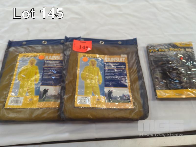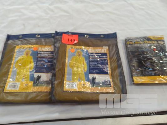2 X STEARNS PVC RAINSUITS - SIZE LARGE, COLOUR YELLOW. AND... OZTRAIL PVC RAIN PONCHO.