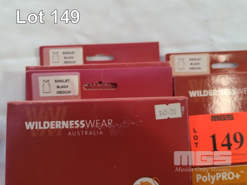 3 X SINGLET TOPS. WILDERNESS WEAR POLYPROPYLENE THERMAL UNDERWEAR - SIZE MEDIUM, COLOUR BLACK.