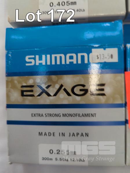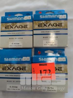 4 X 300M ROLLS OF SHIMANO "EXAGE EXTRA STRONG" MONOFILAMENT FISHING LINE. 3 @ 0.405MM, 12.9KG. 1 @ 0.255MM, 5.5KG.