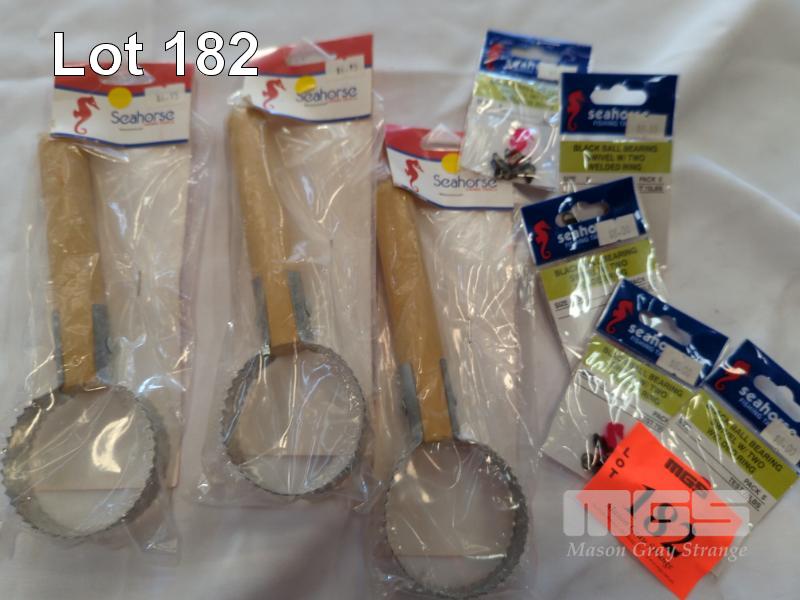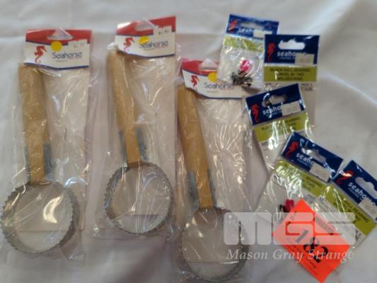 5 X PACKS OF SEAHORSE SWIVELS - "BLACK BALL BEARING SWIVEL W/TWO WELDED RING", SIZE 3. 5 PER PACK. AND... 3 X SEAHORSE FISH SCALING TOOLS.