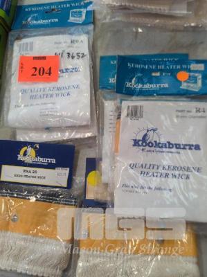 7 X KOOKABURRA KEROSENE HEATER WICKS. 2 SUIT RSA 28. 1 SUIT RSA 28 & RCA28B. 2 @ 85MM R4. 1 @ 65MM R9A. 1 UNKNOWN.