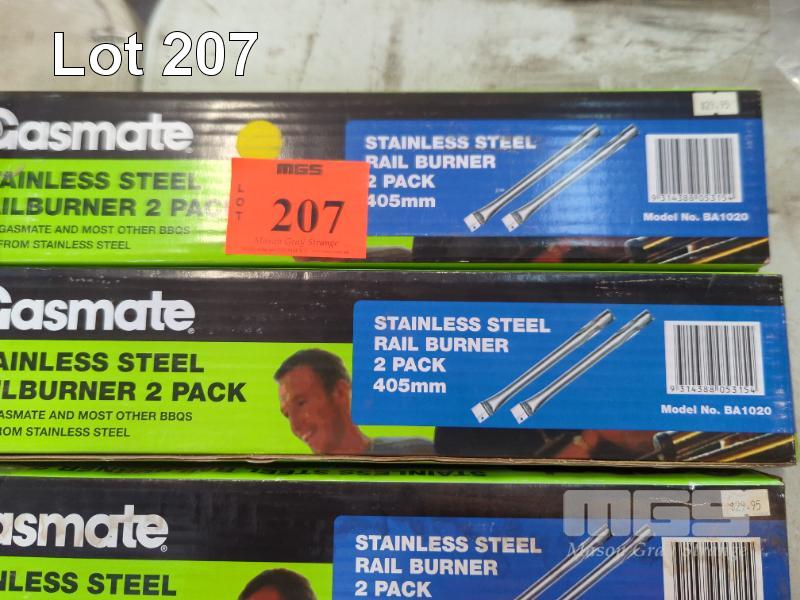 5 X PACKS OF GAS MATE BBQ STAINLESS STEEL RAIL BURNERS. 2 PER PACK.