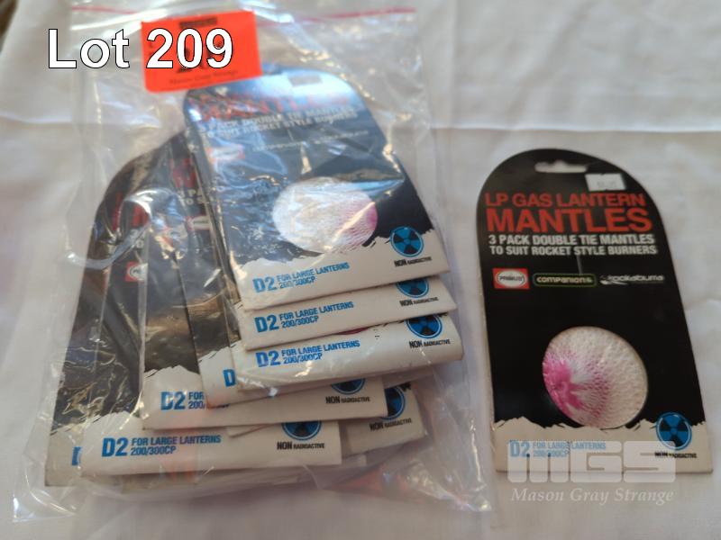 15 X PACKS OF LP GAS LANTERN MANTELS - D2 FOUR LARGE LANTERNS 200/300CP. 3 PER PACK.