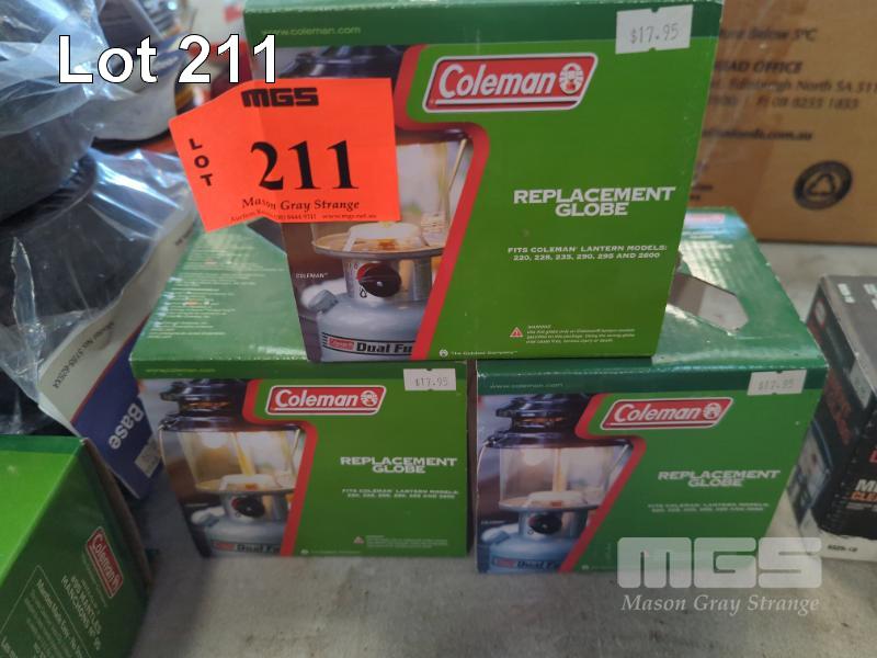 3 X COLEMAN LANTERN REPLACEMENT GLOBES. SUIT MODELS 220, 228, 290, 295 & 2600.