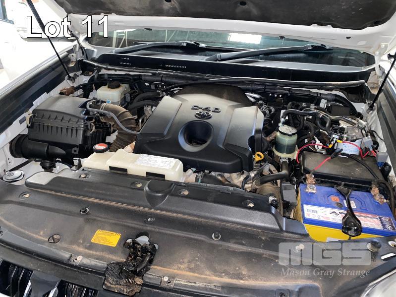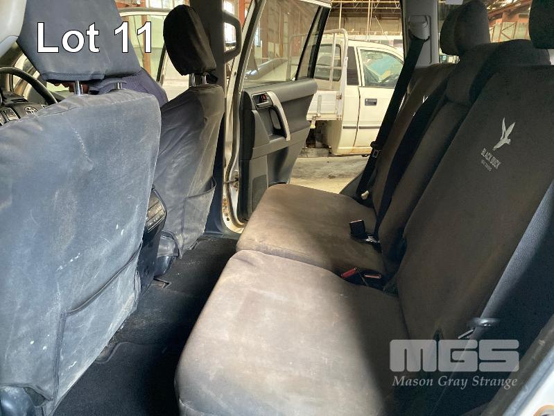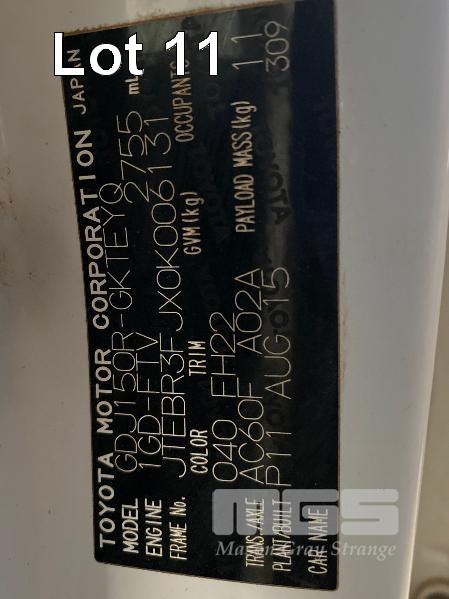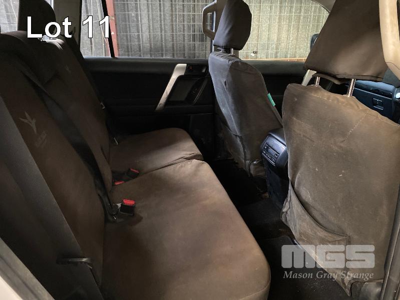 2015 TOYOTA LANDCRUISER PRADO 150 SERIES WAGON 4x4 VIN: JTEBR3FJX0K00631 ENG: 1GD8016271 ODO: 273,628kms SHOWING D4D DIESEL ENGINE, 4 SPEED AUTOMATIC TRANSMISSION, WHITE DUCO, 5 DOORS, 7 SEAT, 4x4 ABS, AIR BAG, AIR CON, ALLOY WHEELS, BLUETOOTH, BULL BAR, CD PLAYER, CENTRAL LOCKING, CRUISE CONTROL, FOG LAMPS, IMMOBILISER, POWER STEERING, POWER WINDOWS, ROOF RACKS, SAT NAV, SIDE STEP, SPARE WHEEL, SPOT LIGHTS, TOW BAR, TRACTION CONTROL (WITH 2 KEY/S, WITH OWNER'S MANUAL, WITH SERVICE BOOKS) CONDITION: - Note: Ex Mine Car