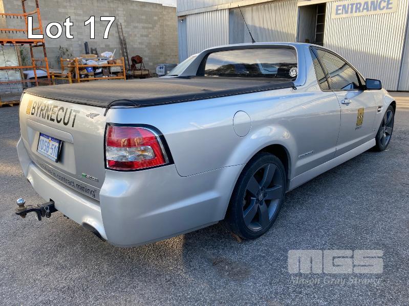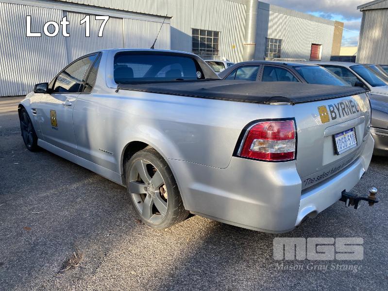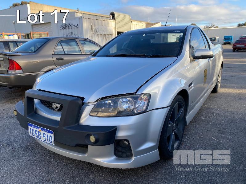 2011 HOLDEN VE COMMODORE THUNDER SERIES II UTILITY REG: 1DSB 510 (WA) VIN: 6G1EK4EV4BL557938 ENG: LLT111600015 ODO: 222,067kms SHOWING 6 CYLINDER, AUTOMATIC TRANSMISSION, PETROL, SILVER DUCO, 2 DOORS, 2 SEAT, ABS, AIR BAG, AIR CON, ALLOY WHEELS, BLUETOOTH, CENTRAL LOCKING, CRUISE CONTROL, NUDGE BAR, POWER WINDOWS, KEY #2 (WITH 2 KEY/S, WITH OWNER'S MANUAL)