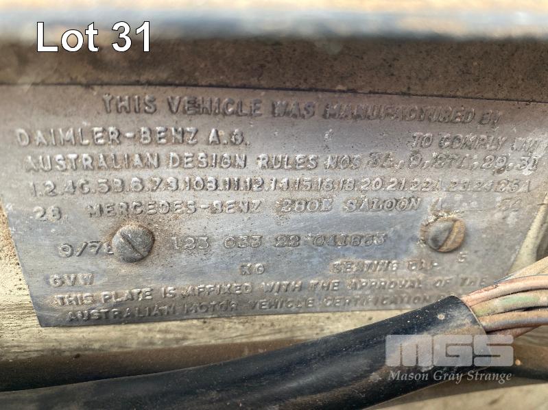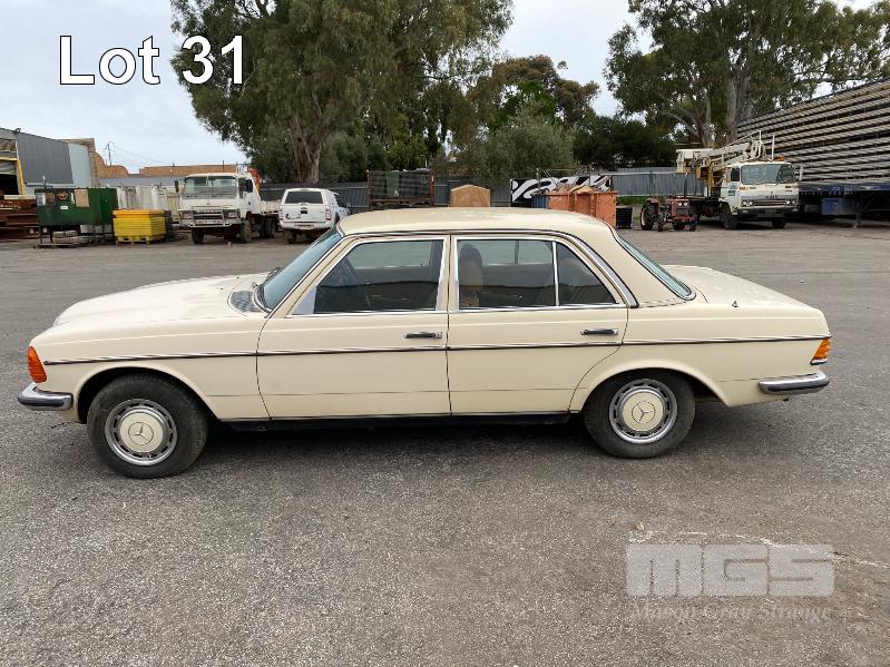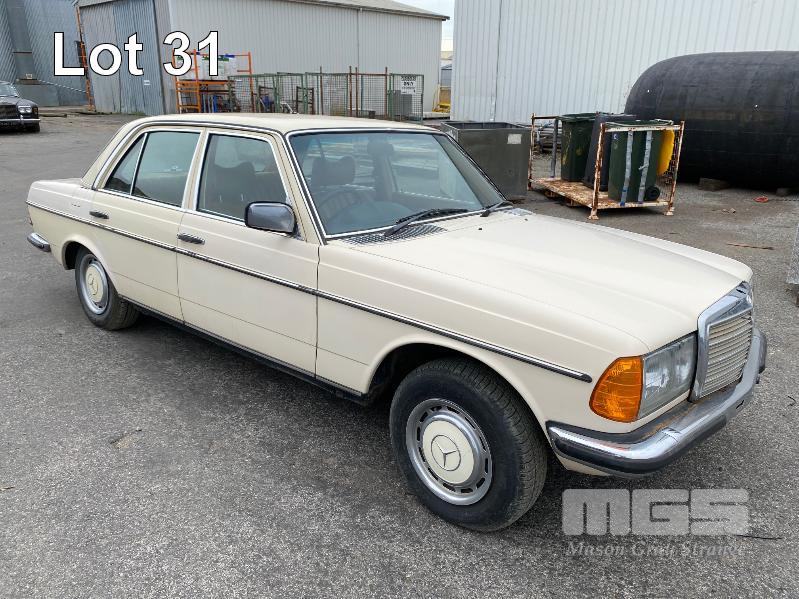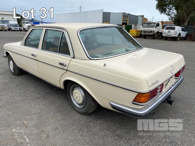 1978 MERCEDES BENZ 280E SEDAN REG: NO PLATES VIN: 123 033 22 041863 ENG: 11098422040635 ODO: 304,533 kms INDICATED 6 CYLINDER, AUTO, PETROL, CREAM DUCO, 4 DOORS, 5 SEAT, NOT STARTING KEY #14 (NO PAPERS, WITH 1 KEY/S, WITH OWNER'S MANUAL, NO SERVICE BOOKS)