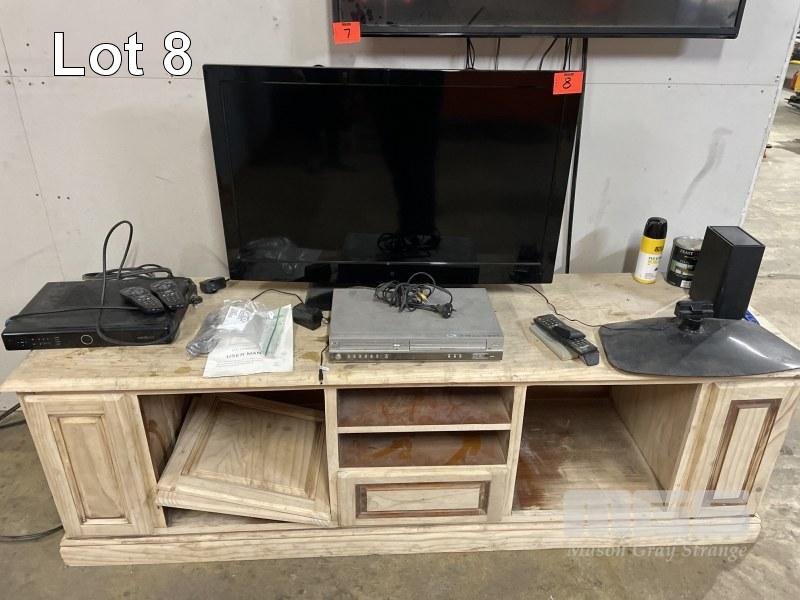 TV 40 INCH, LG DVD/RECORDER, COCOON DVR, CABLES & 2 x TV STANDS