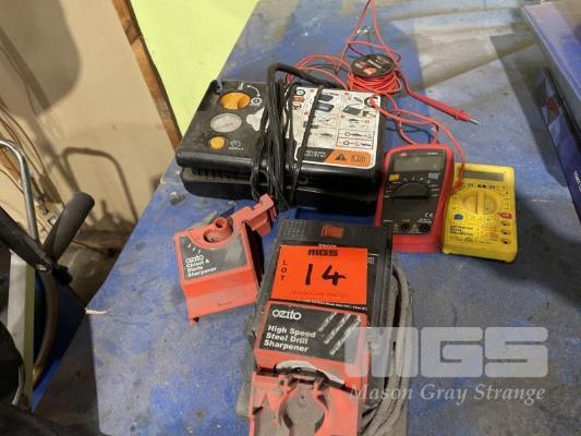 OZITO DRILL SHARPENER, 12v COMPRESSOR & MULTI METERS