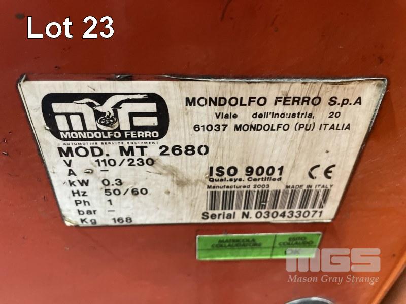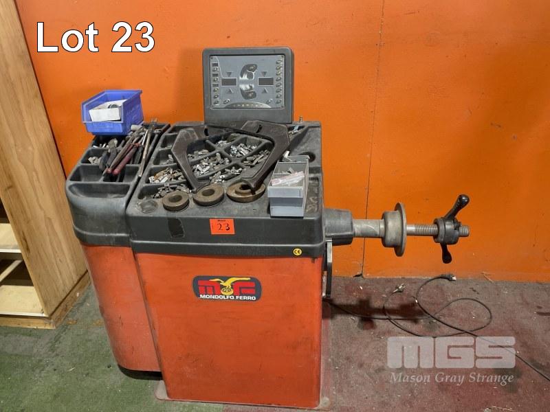 MONDOLFO FERRO DIGITAL WHEEL BALANCER, MODEL: MT2680, 240v + WEIGHTS & TOOLS