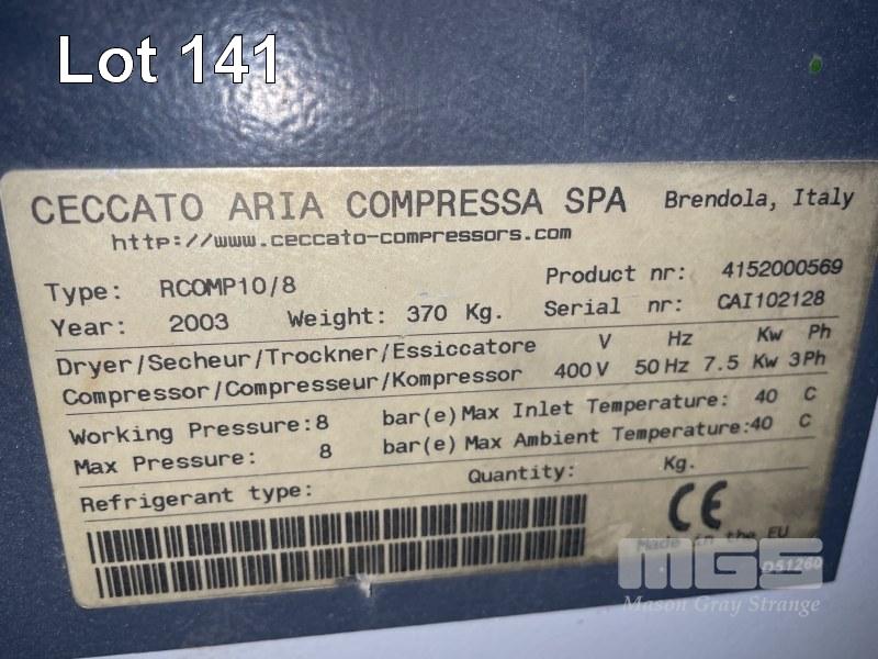 PACKAGED AIRCOMPRESSOR, CECCATO ARIA 415v, MODEL: A COMP 10/8, DOM 2003, 8 BAR, 32,205hrs, WITH SEPARATE AIR DRYER 240v