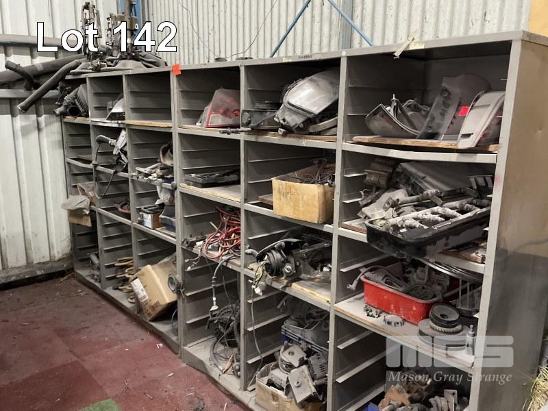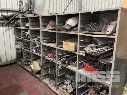 2 x STEEL MULTI BAY RACKS, ASSORTED AUTO PARTS