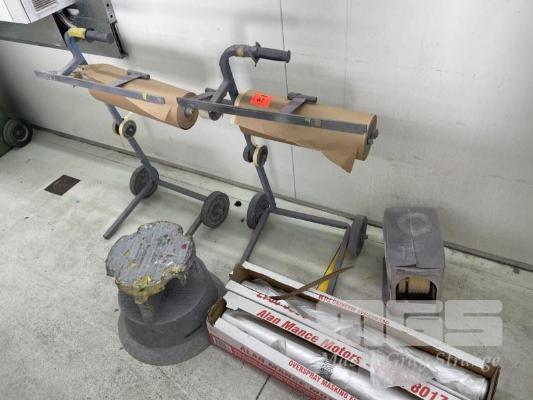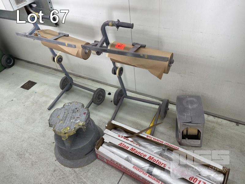 2 x MASKING TROLLEYS, STOOL, OVER SPRAY SHEET