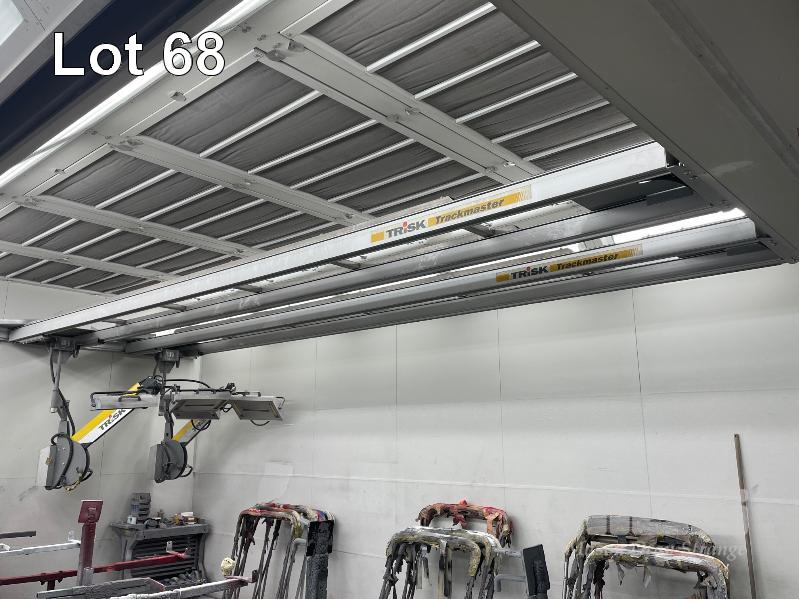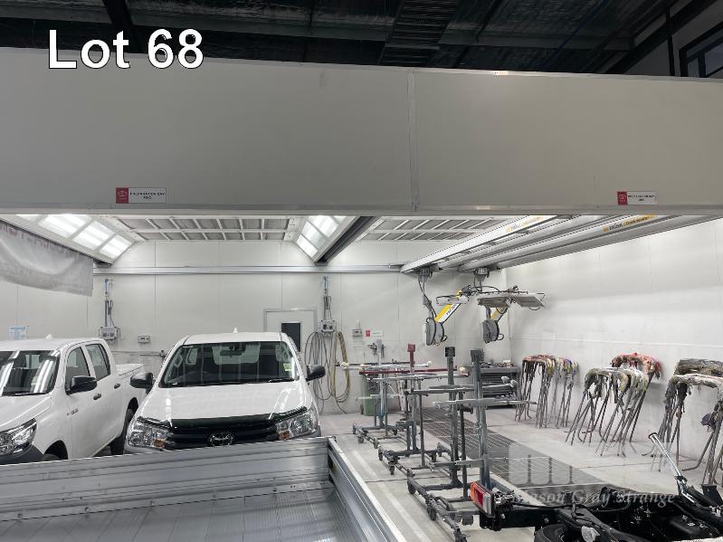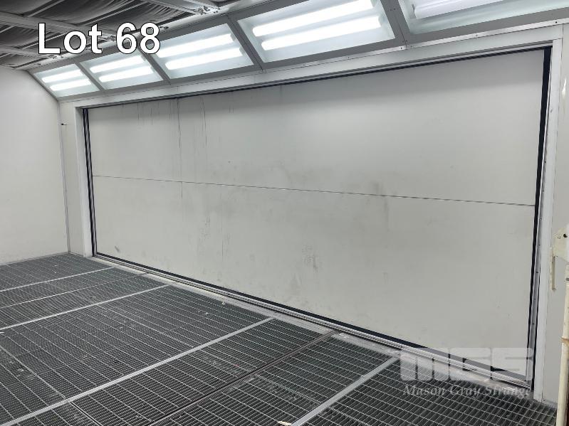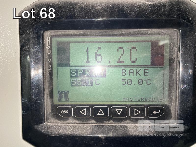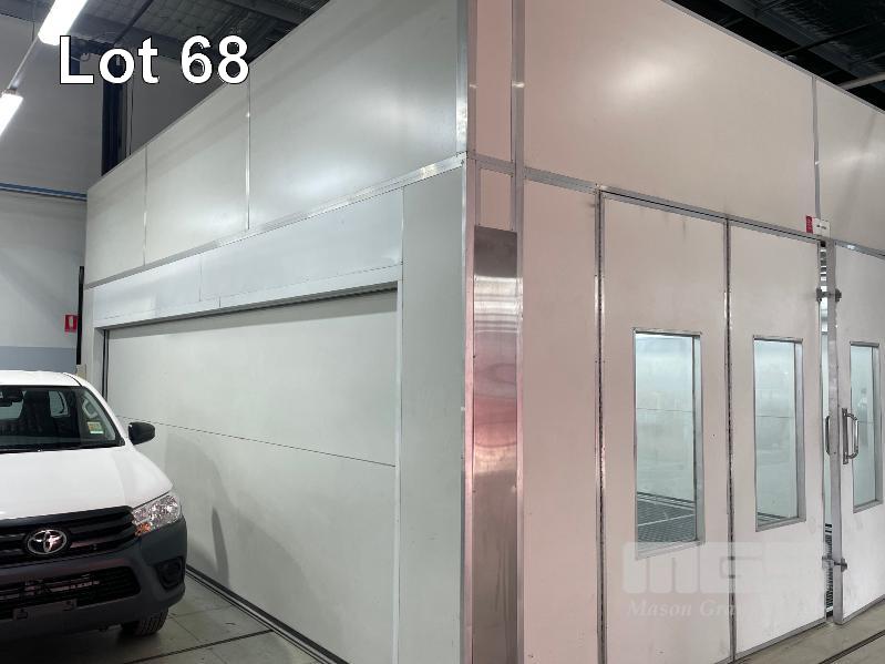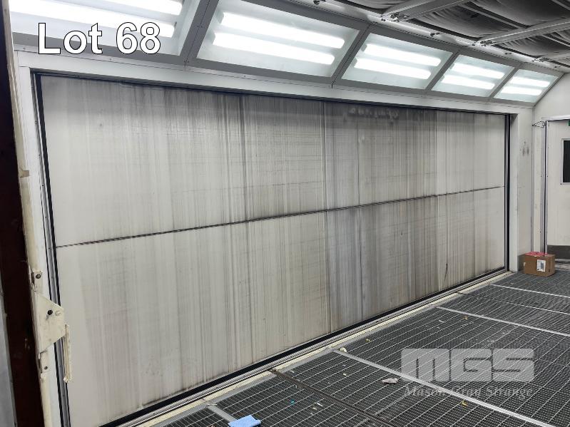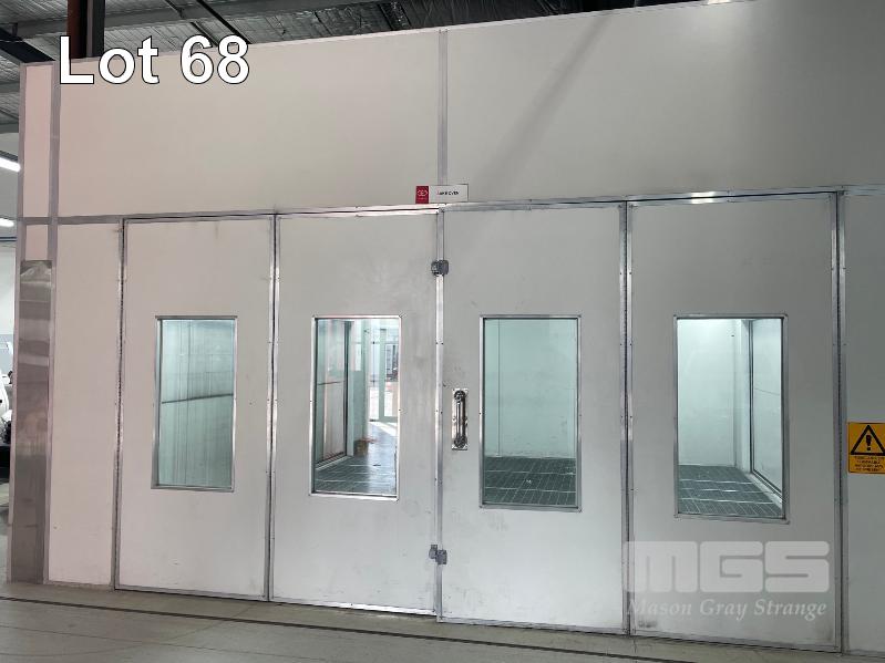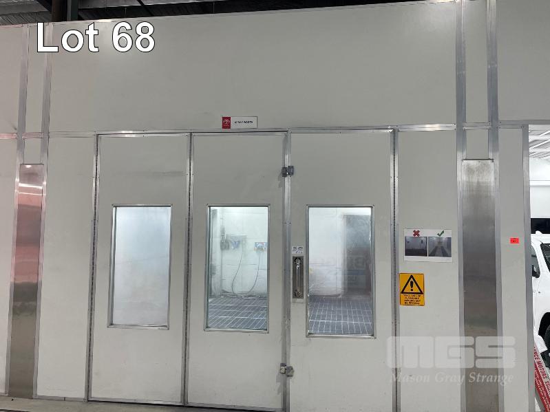 MASTER BOOTH, CRASH COLLISION PAINT/ PRE PAINT SYSTEM 4 x BAY PREPAINT/ SANDING STRUCTURE, 8 x 4m APPROX PER BAY, WITH FLOOR VENT 4 x DUCT EXTRACTION UNITS, 16m DIVIDING CURTIAN, 3m CENTER CURTIAN, TRISK TRACKMASTER DUAL ARM INFARED DRYIN LAMP UNIT (1 ARM ALL FAULTS) MODEL:TRISK-32DT, 4 x MASTER BOOTH CONTROLS, FLOOR TRACKING WHEEL CRADLES, LINKING PREPAINT SPRAY BOOTH & BAKE BOOTH AREAS SPRAY BOOTH 8 x 4m PREFAB PANEL DOWN DRAFT SYSTEM BAKE BOOTH, 8 x 4m PREFAB PANEL DOWN DRAFT SYSTEM WITH DIVIDING CURTIANS/ SIDE ACCESS, FOLDING DOOR FRONT, BOTH GAS FIRED BAKE SERIAL: MBFD0111016V, HOURS: 10,501 SPRAY SERIAL: MBFD0111015V, HOURS: 4,963 COMPLETE WITH PREFAB PAINT ROOM WITH MIXING BENCH & VENTILATED EXTRACTION TO CEILING (BUYER TO REMOVE) (PROFESSIONAL SERVICES REQUIRED)