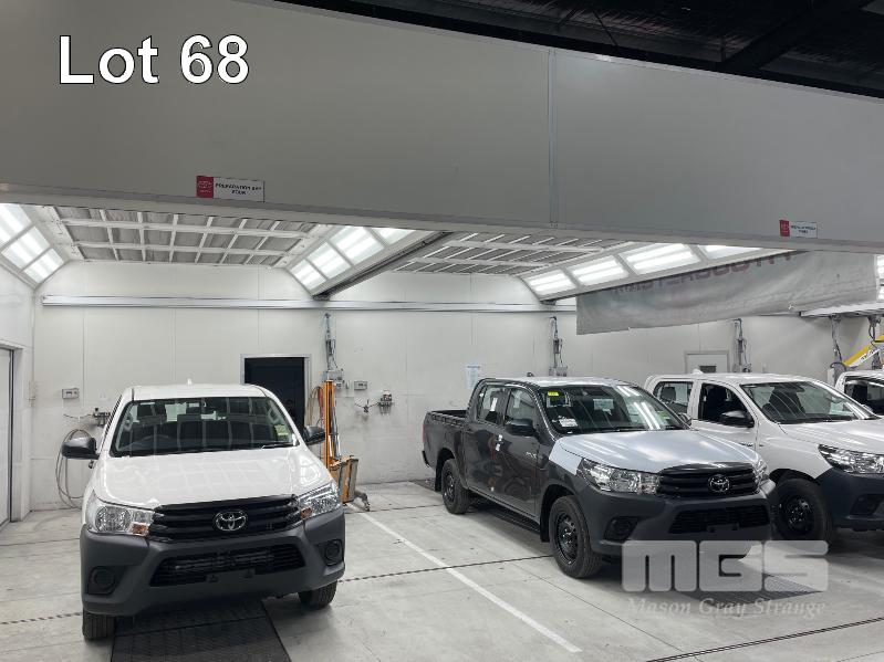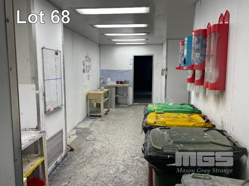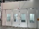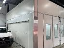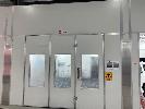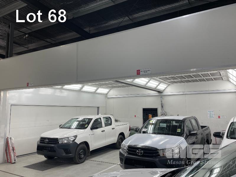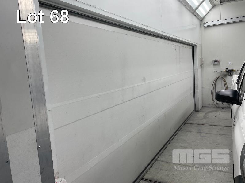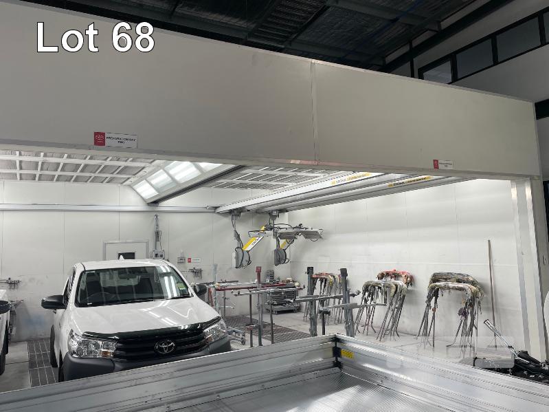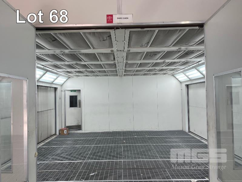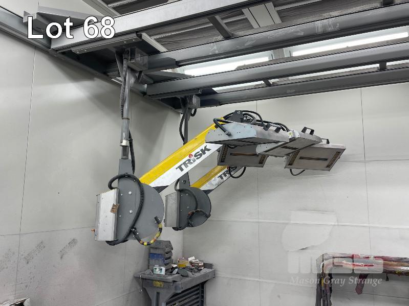 MASTER BOOTH, CRASH COLLISION PAINT/ PRE PAINT SYSTEM 4 x BAY PREPAINT/ SANDING STRUCTURE, 8 x 4m APPROX PER BAY, WITH FLOOR VENT 4 x DUCT EXTRACTION UNITS, 16m DIVIDING CURTIAN, 3m CENTER CURTIAN, TRISK TRACKMASTER DUAL ARM INFARED DRYIN LAMP UNIT (1 ARM ALL FAULTS) MODEL:TRISK-32DT, 4 x MASTER BOOTH CONTROLS, FLOOR TRACKING WHEEL CRADLES, LINKING PREPAINT SPRAY BOOTH & BAKE BOOTH AREAS SPRAY BOOTH 8 x 4m PREFAB PANEL DOWN DRAFT SYSTEM BAKE BOOTH, 8 x 4m PREFAB PANEL DOWN DRAFT SYSTEM WITH DIVIDING CURTIANS/ SIDE ACCESS, FOLDING DOOR FRONT, BOTH GAS FIRED BAKE SERIAL: MBFD0111016V, HOURS: 10,501 SPRAY SERIAL: MBFD0111015V, HOURS: 4,963 COMPLETE WITH PREFAB PAINT ROOM WITH MIXING BENCH & VENTILATED EXTRACTION TO CEILING (BUYER TO REMOVE) (PROFESSIONAL SERVICES REQUIRED)
