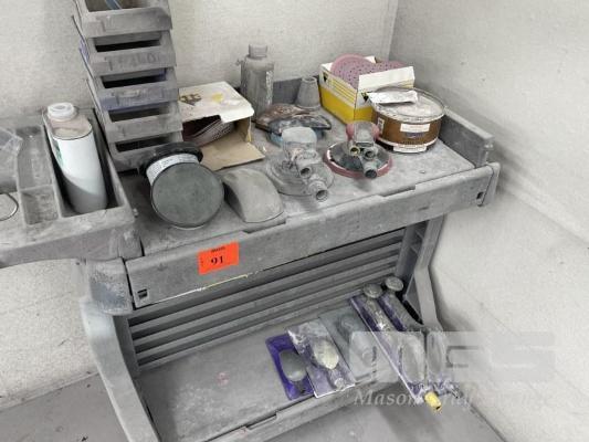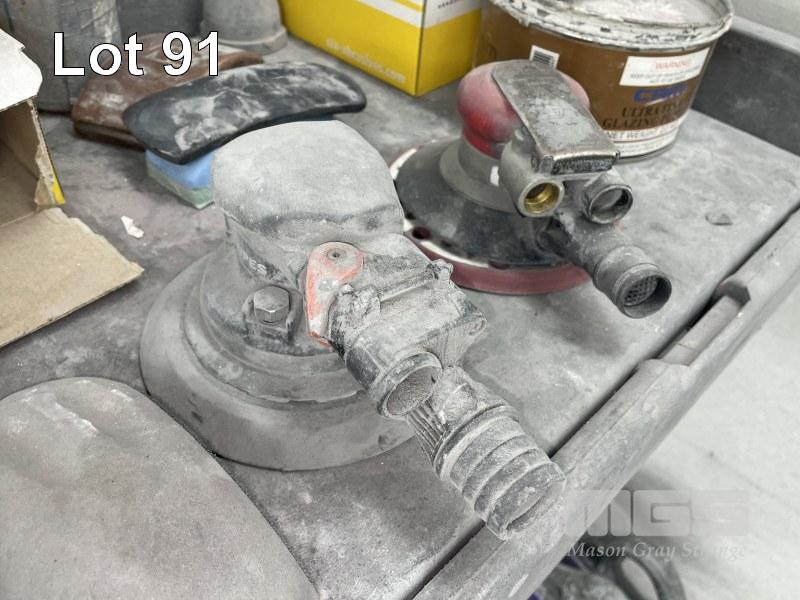 SANDING STATION SET INCLUDING 2 x ORBITAL AIR SANDERS, 3 x 3M INLINE SANDING DISCS, ASSORTED DISC SETS +PVC PAINT TROLLEY
