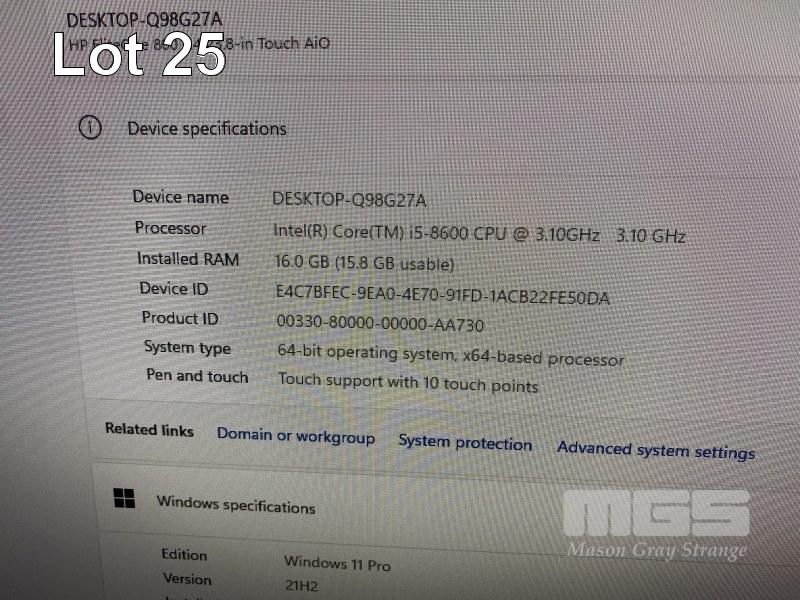 ALL-IN-ONE PC, HP ELITEONE 800 G4 (3CJ74AV), CORE i5 8600 (8TH GEN) @ 3.1GHz, 16GB DDR4 RAM, 256GB NVMe M.2 SSD, 256GB SSD, DVD-RW, INBUILT 23.8" TOUCHSCREEN (1920x1080), INTEL UHD GRAPHICS 630, WINDOWS 11 PRO INSTALLED, KEYBOARD & MOUSE S/N:AUD94307ZK