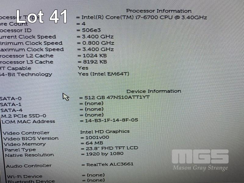 ALL-IN-ONE PC, DELL OPTIPLEX 7450, CORE i7 6700 (6TH GEN) @ 3.4GHz, 16GB DDR4 RAM, 512GB SSD, INBUILT 23.8" FHD WIDESCREEN (1920x1080), INTEL HD VIDEO, WEBCAM, 7 x USB, 1 x USB-C, WINDOWS 10 HOME INSTALLED, KEYBOARD & MOUSE S/N:4B4XCK2