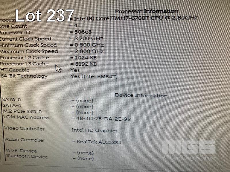 DESKTOP PC, DELL OPTIPLEX 7040 MICRO, CORE i7 6700T (6TH GEN) @ 2.8GHz, 16GB DDR4 RAM, NO HDD (NO POWER SUPPLY, NO KEYBOARD, NO MOUSE) S/N:90B91H2