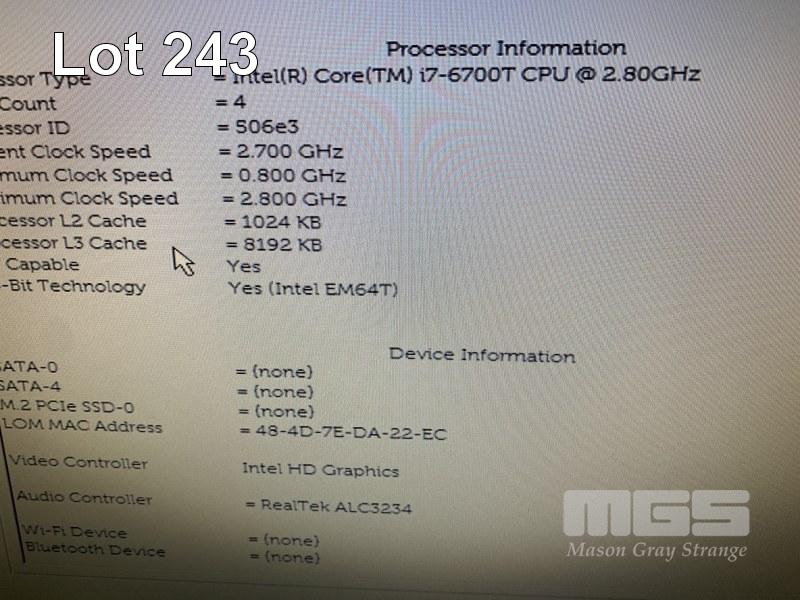 DESKTOP PC, DELL OPTIPLEX 7040 MICRO, CORE i7 6700T (6TH GEN) @ 2.8GHz, 16GB DDR4 RAM, NO HDD (NO POWER SUPPLY, NO KEYBOARD, NO MOUSE) S/N:4DB31H2