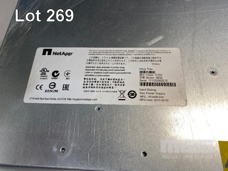 RACKMOUNT STORAGE ARRAY, NETAPP, MODEL 0833, 2U, 1 x 1.2TB SAS HDD, 23 x 600GB SAS HDD, 2 x SAS CONTROLLERS, 2 x PSU (NO CABLES)