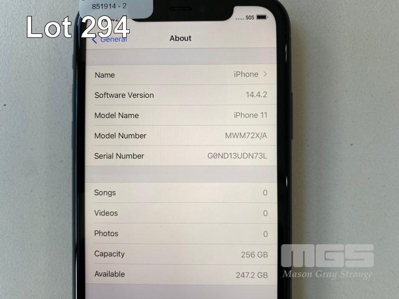 APPLE iPHONE 11, 256GB, BLACK, MODEL MHDA3X/A (NO CHARGER, NO CABLE) S/N:G0ND13UDN73L