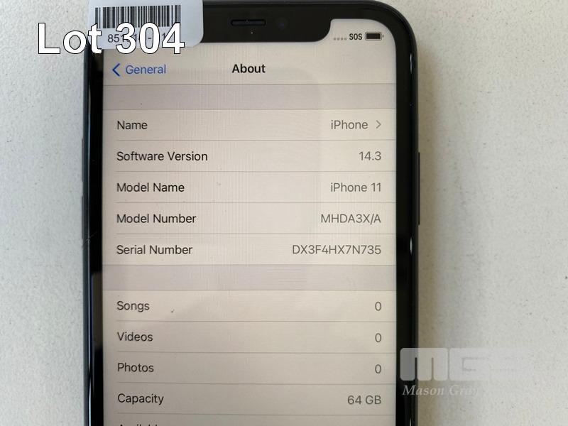 APPLE iPHONE 11, 64GB, BLACK, MODEL MHDA3X/A (NO CHARGER, NO CABLE) S/N:DX3F4HX7N735