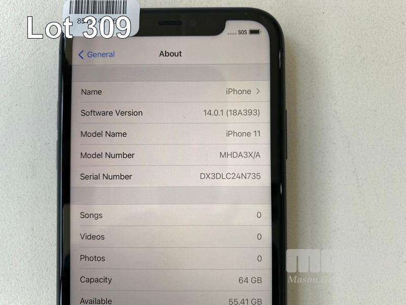 APPLE iPHONE 11, 64GB, BLACK, MODEL MHDA3X/A (NO CHARGER, NO CABLE) S/N:DX3DLC24N735