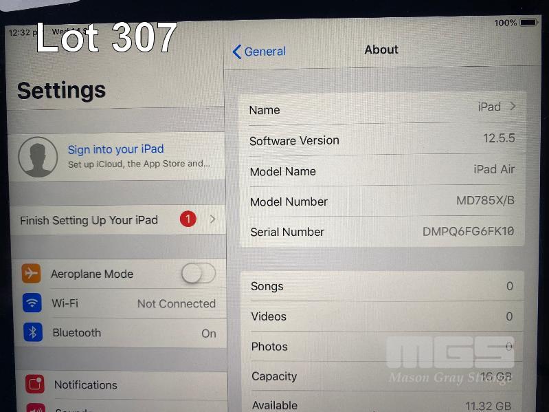 APPLE iPAD AIR, 16GB, Wi-Fi, SPACE GREY, MODEL A1474 WITH CABLE & CHARGER S/N:DMPQ6FG6FK10