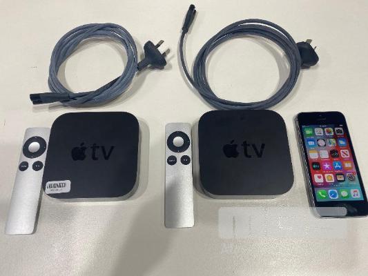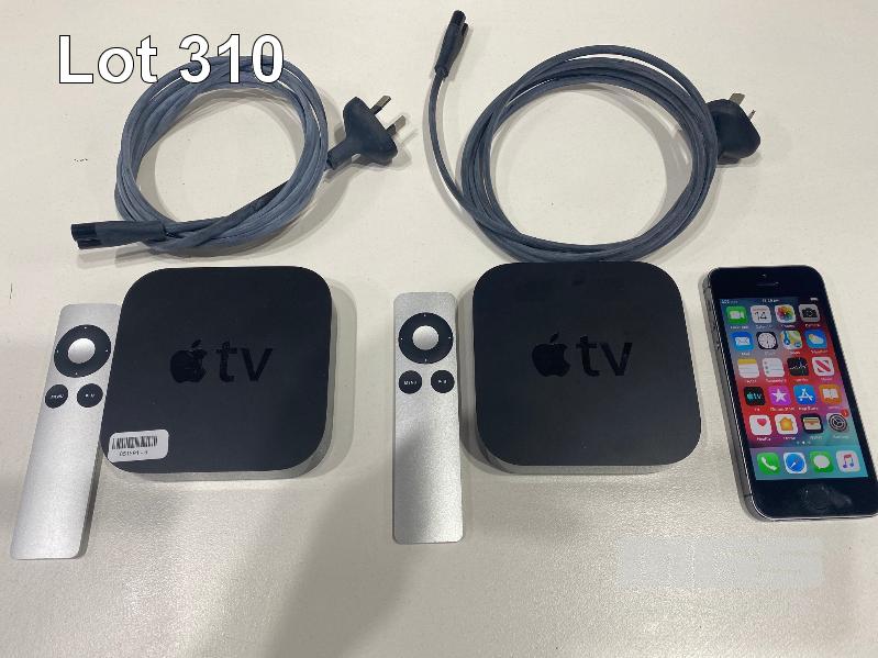 2 x APPLE TV 3RD GEN, MODEL A1469 WITH REMOTES, 1 x APPLE iPHONE 5S, 16GB, A1530 (NO CABLE, NO CHARGER) S/N:C07RHNYYFF54, C07RHNN4FF54, DX3SJBRUFRC4