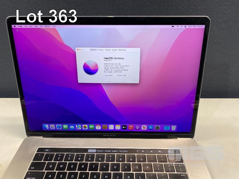 LAPTOP, APPLE MACBOOK PRO (A1707), CORE i7 6700HQ (6TH GEN) @ 2.6GHz, 16GB DDR3 RAM, 256GB SSD, 15.4" RETINA DISPLAY (2880x1800), INTEL HD GRAPHICS 530, THUNDERBOLT 3, TOUCHBAR, Wi-Fi, MAC OS 12 INSTALLED (NO USB-C POWER SUPPLY) (NOTE: MINOR MARKS ON SCREEN, SMALL DENT ON CORNER OF CASING) S/N:C02TF7KSGTFL