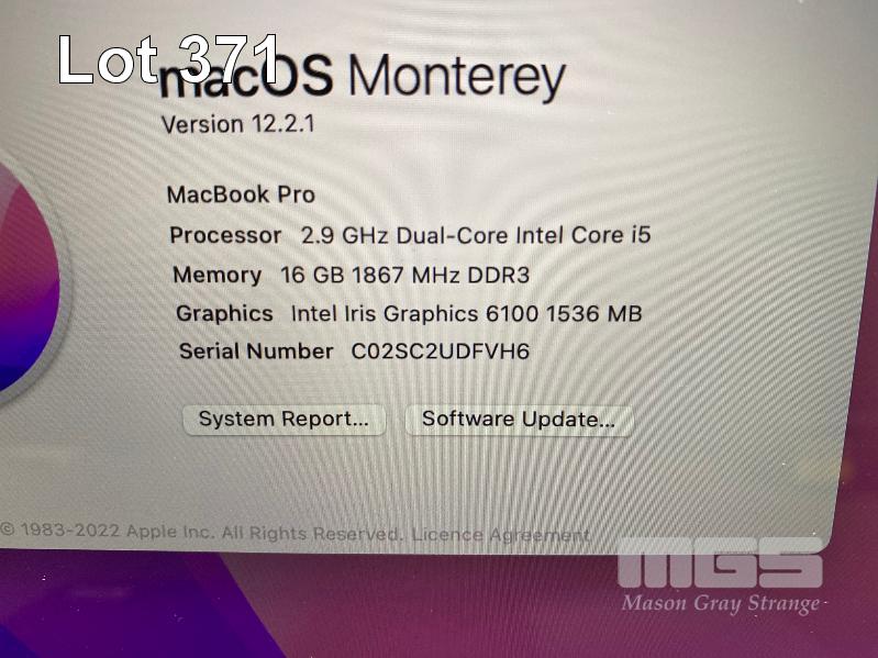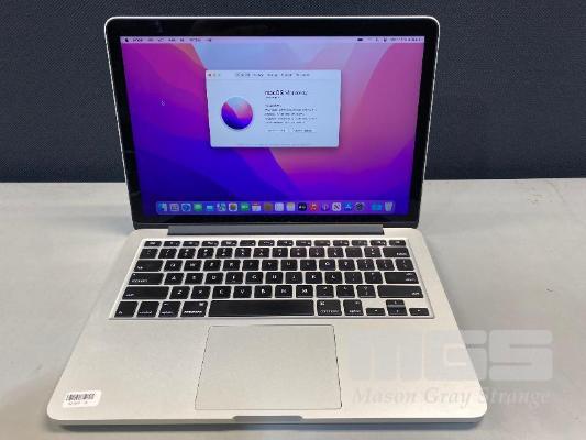 LAPTOP, APPLE MACBOOK PRO (A1502), CORE i5 5287U (5TH GEN) @ 2.9GHz, 16GB DDR3 RAM, 256GB SSD, 13.3" RETINA DISPLAY (2560x1600), INTEL IRIS GRAPHICS 6100, Wi-Fi, MAC OS 12 INSTALLED (NO POWER SUPPLY) S/N:C02SC2UDFVH6