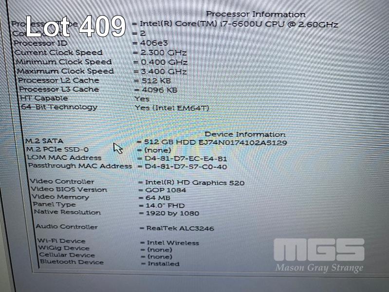 LAPTOP, DELL LATITUDE 7480, CORE i7 6600U (6TH GEN) @ 2.6GHz, 16GB DDR4 RAM, 512GB M.2 SSD, 14" WIDESCREEN (1920x1080), INTEL HD GRAPHICS 520, Wi-Fi, BLUETOOTH, WINDOWS 10 HOME INSTALLED & POWER SUPPLY S/N:GHQP4H2
