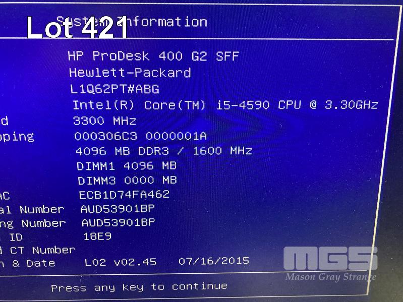 DESKTOP PC, HP PRODESK 400 G2 SFF, CORE i5 4590 (4TH GEN) @ 3.3GHz, 4GB DDR3 RAM, 120GB SSD, DVD-RW, INTEL HD VIDEO, WINDOWS 10 PRO INSTALLED (NO KEYBOARD, NO MOUSE) S/N:AUD53901BP
