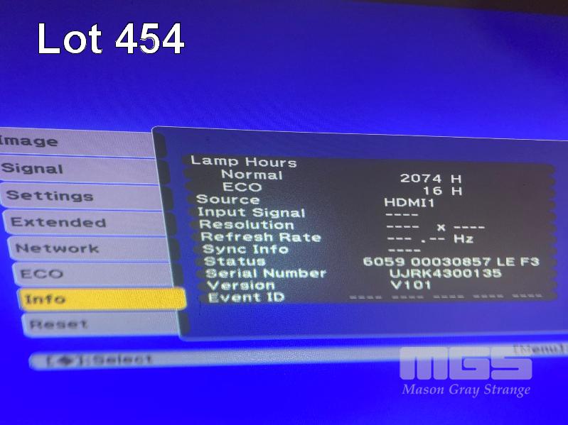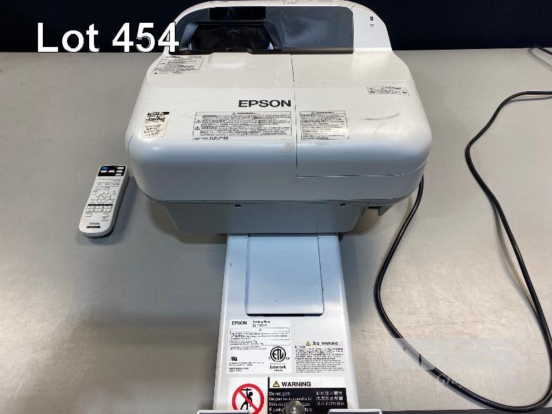 PROJECTOR, EPSON EB-585W ULTRA SHORT THROW 3LCD, 3,300 LUMENS, HDMI INPUT WITH REMOTE & BRACKET (MISSING WALL MOUNT), 2,074 HOURS SHOWING S/N:UJRK4300135