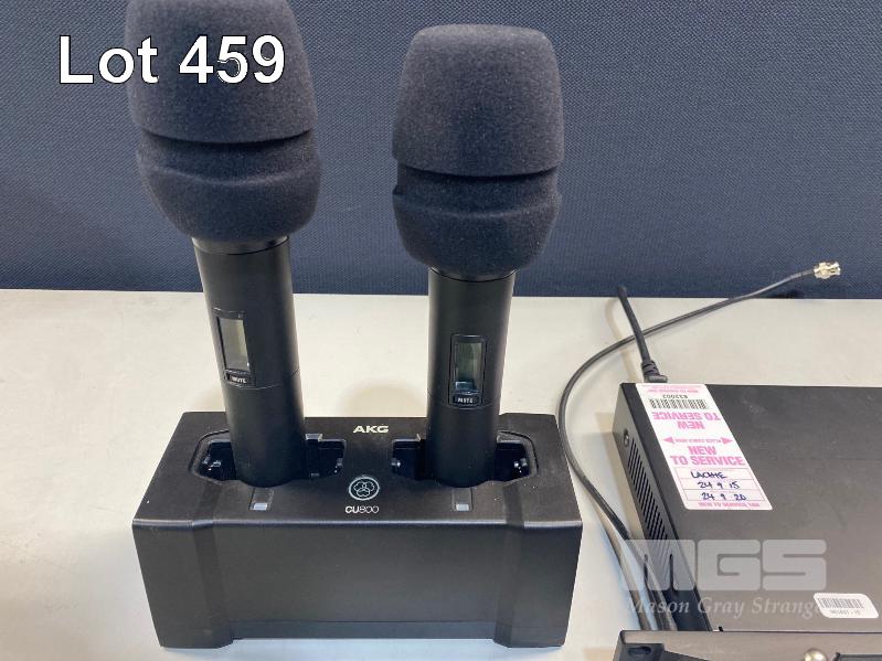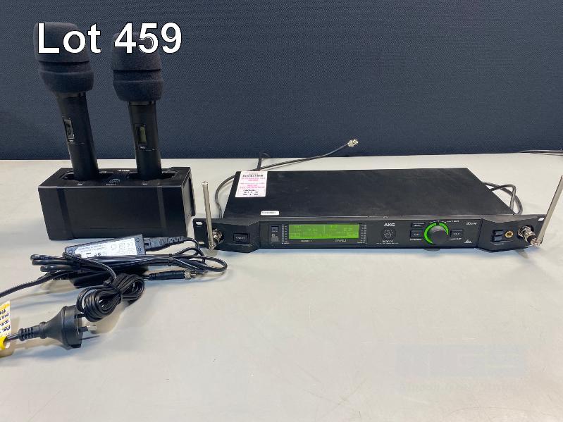 AKG DSR800 DIGITAL WIRELESS STATIONARY RECEIVER WITH 2 x DHT800 HANDHELD MICROPHONES & CU800 CHARGING UNIT WITH POWER SUPPLY S/N:76293721