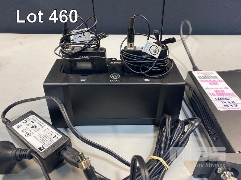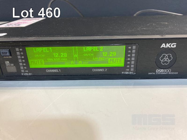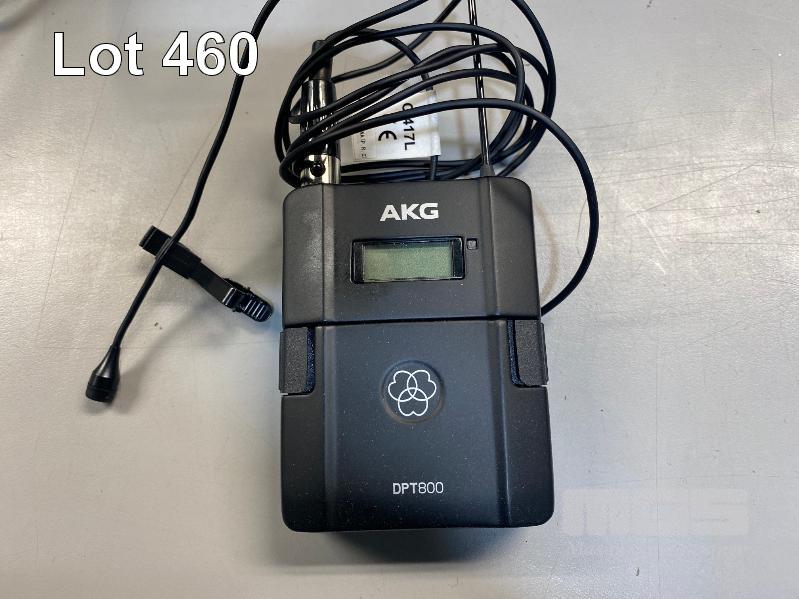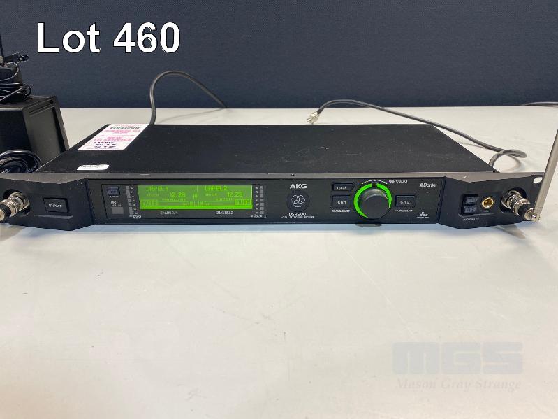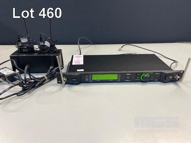 AKG DSR800 DIGITAL WIRELESS STATIONARY RECEIVER WITH 2 x C417L LAVALIER MICROPHONES, 2 x DPT800 BODYPACK TRANSMITTERS & CU800 CHARGING UNIT WITH POWER SUPPLY S/N:76291093