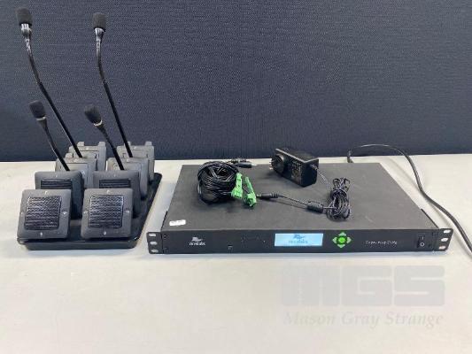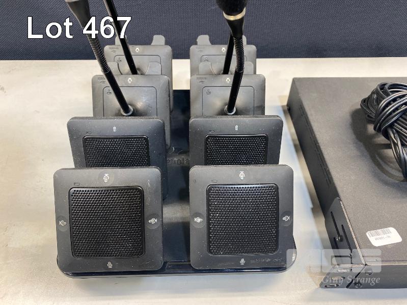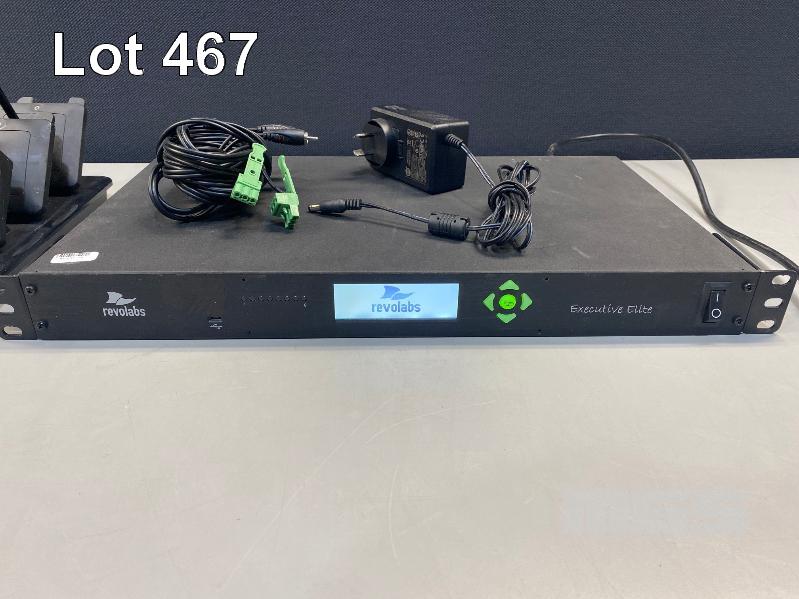 REVOLABS EXECUTIVE ELITE 8-CHANNEL WIRELESS SYSTEM, MODEL 01-ELITEEXEC8 INCLUDING - 2 x GOOSENECK 12" MICROPHONES, 01-ELITEMIC-GN12 - 2 x GOOSENECK 6" MICROPHONES, 01-ELITEMIC-GN6 - 2 x DIRECTIONAL TABLETOP MICROPHONES, 01-ELITEMIC-DR - 2 x OMNIDIRECTIONAL TABLETOP MICROPHONES, 01-ELITEMIC-OM WITH ELITE 8 MIC CHARGER TRAY & POWER SUPPLY S/N:VT4910001057