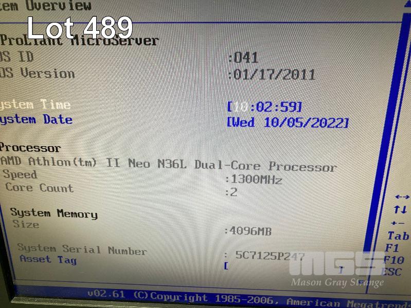 HP PROLIANT MICRO SERVER (633724-011), AMD ATHLON II NEO N36L @ 1.33GHz, 4GB RAM, 2 x 2TB SATA HDD, 2 x 250GB SATA HDD S/N:5C7125P247