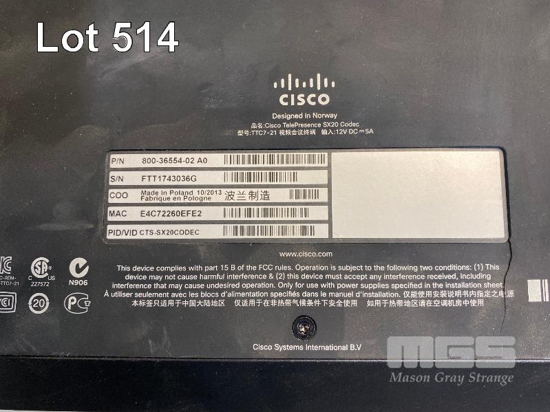 QTY ROUTERS & NETWORKING INCLUDING CISCO 2900 SERIES, CISCO 800 SERIES WITH POWER SUPPLY, CISCO TELEPRESENCE CTS Sx20 800-36554-02 (NO POWER SUPPLY), CISCO ACCESS POINT (NO CABLES)