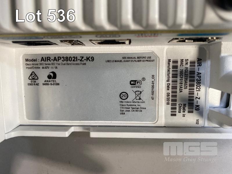 15 x CISCO AIRONET 3800 SERIES WIRELESS ACCESS POINTS, AIR-AP3802I-Z-K9 WITH BRACKETS (POWER SUPPLIES NOT INCLUDED)