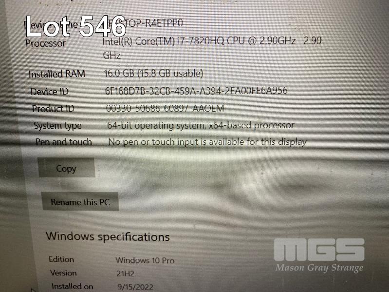 LAPTOP, LENOVO THINKPAD P51 MOBILE WORKSTATION, TYPE 20HJ, CORE i7 7820HQ (7TH GEN) @ 2.9GHz, 16GB DDR4 RAM, 500GB NVMe M.2 SSD, 15.6" WIDESCREEN (1920x1080), 4GB NVIDIA QUADRO M2200 VIDEO, Wi-Fi, BLUETOOTH, WINDOWS 10 PRO INSTALLED & POWER SUPPLY (NOTE: MARKS ON SCREEN, DAMAGE TO CASING LHS) S/N:PF0UGLAT