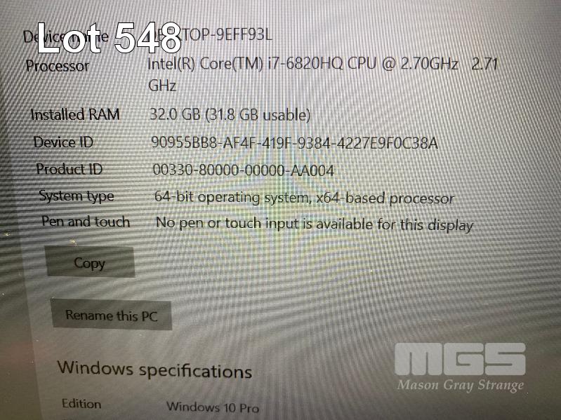 LAPTOP, LENOVO THINKPAD P50 MOBILE WORKSTATION, TYPE 20EQ, CORE i7 6820HQ (6TH GEN) @ 2.7GHz, 32GB DDR4 RAM, 512GB NVMe M.2 SSD, 512GB SSD, 500GB SATA HDD, 15.6" WIDESCREEN (1920x1080), 4GB NVIDIA QUADRO M2000M VIDEO, Wi-Fi, BLUETOOTH, WINDOWS 10 PRO INSTALLED & POWER SUPPLY S/N:PC0MKM24