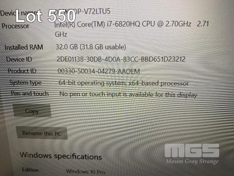 LAPTOP, LENOVO THINKPAD P50 MOBILE WORKSTATION, TYPE 20EQ, CORE i7 6820HQ (6TH GEN) @ 2.7GHz, 32GB DDR4 RAM, 256GB NVMe M.2 SSD, 15.6" WIDESCREEN (1920x1080), 4GB NVIDIA QUADRO M2000M VIDEO, Wi-Fi, BLUETOOTH, WINDOWS 10 PRO INSTALLED & POWER SUPPLY S/N:PC0MKM25