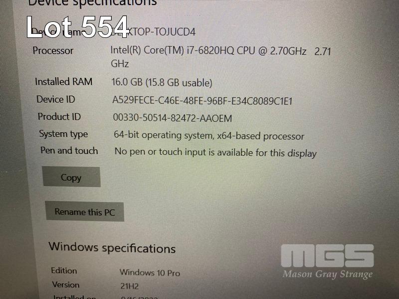 LAPTOP, LENOVO THINKPAD P50 MOBILE WORKSTATION, TYPE 20EQ, CORE i7 6820HQ (6TH GEN) @ 2.7GHz, 16GB DDR4 RAM, 256GB SSD, 15.6" WIDESCREEN (1920x1080), 4GB NVIDIA QUADRO M2000M VIDEO, Wi-Fi, BLUETOOTH, WINDOWS 10 PRO INSTALLED & POWER SUPPLY (NOTE: MARKS ON SCREEN) S/N:PC0L0L7C
